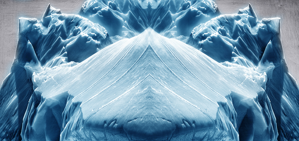 Candy, this is a nice 'reflected' image. For me, the black and white didn't quite cut it, mood wise. So I gave the ice the characteristic blue tint that ice normally shows. I may have gotten it too blue, but just wanted to feel that 'cold' mood from the image! |