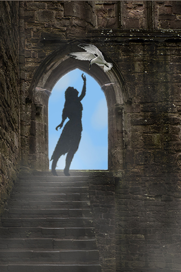 Steve's idea of walking toward the light really enhances the image, in my opinion. However, in Steve's rendition, there are two sources of light, as seen by the two shadows. Unfortunately, the upper left side light seems to be coming from a darker place, so some work would need to be done to make sure the light sources are correct. |