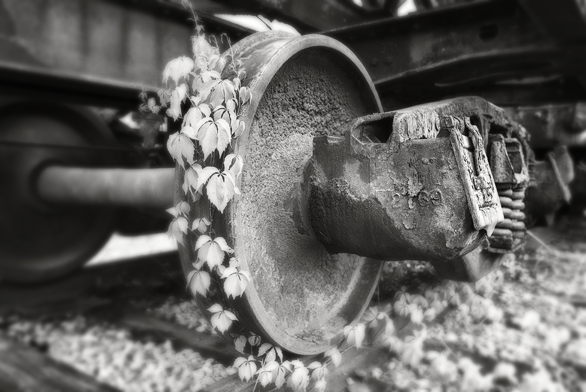 To me, the wheel is the subject and my preference would be to have the rest of the image more out of focus, in order to not detract from the subject. While depth of field is something one would control in the camera, I tried to mimic it by applying a gaussian blur at 4.4 to the entire image, and then apply a mask to the blurred layer, to bring back the central subject. Then I applied a NIK Color Efex Pro Darken/Lighten Center preset, to darken the non-wheel outer parts of the image, while having a light center on the wheel. |