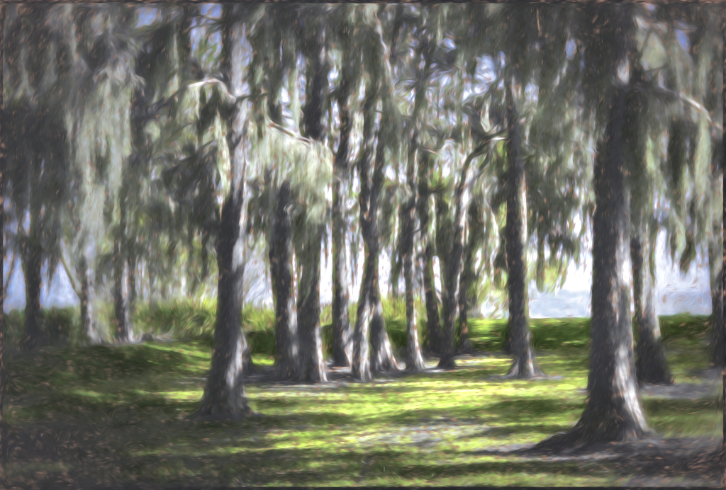 I wanted to make the image a bit more dreamy--impressionistic. So I used Witta's version into Topaz Impressions 2 and applied a Monet II preset, with a brush change and some tweaking of color saturation. It still didn't impress me, so I added a very small Vignette Blur from NIK Color Efex Pro, followed by a Darken/Lighten center preset, with the center placed at the water top slightly to the right. After that, I brightened the image up a bit with an Exposure Adjustment Layer and a Selective Color layer, followed by a bit of light blue painting on the right center water, to distinguish the water from the sky. |