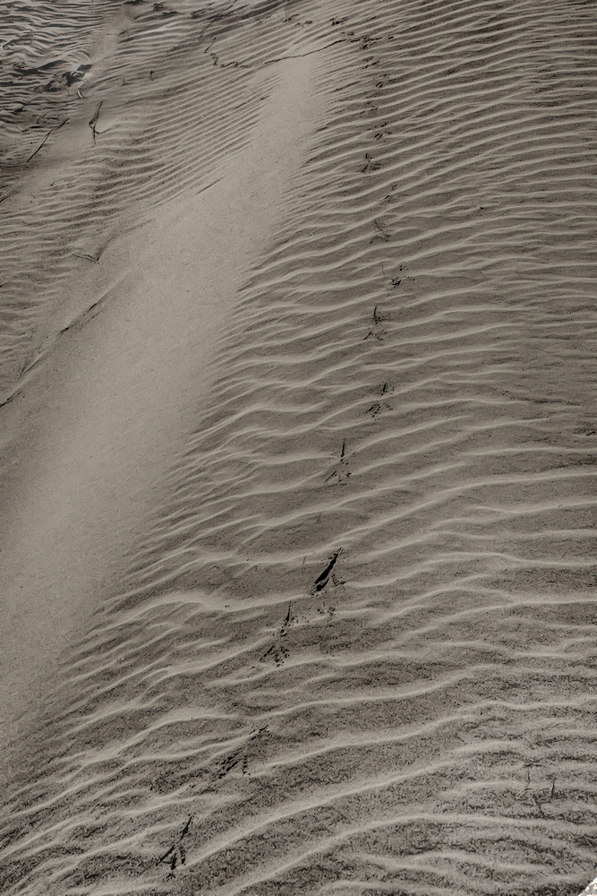 Rita, to answer your question, I prefer the edited image over the original. But both are intriguing. I decided to play with your image. In Camera Raw, I decreased clarity and saturation. Next, the Black slider was put way to the left, while the Shadow slider went all the way to the top. Under Detail, I increased the luminence and moved the color to the left, eliminating most of the color. In Photoshop, I applied the Darken/Lighten Center and moved the center to the bottom of the image. That made the near sand at the bottom brighter and the intensity decreased toward the top of the image. The intent was to give some depth to the imate. Finally, I applied a masked Exposure adjustment layer and used it to lighten the dark upper left. The really dark color of the sand there was distracting to me.