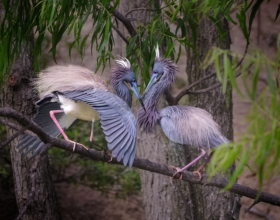 In the final edit, I am distracted from the purity of the purpose of this pose and those beautiful birds, by all the foliage. While a nature picture should develop it in that natural setting, to me, a fine art piece should play upon the senses and focus in more on the birds, taking the eye away from the foliage, especially since the front foliage is blurrier.