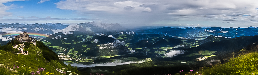 I like you choose Pano format. To me, the real lighting conditions had make half right of the pictures looks a bit dim. What I normally did for this kind of darker areas is enlightening it by using radial filter in Lightroom: increase the exposure, highlight and shadow and adjust the white balance to create partial sun light through clouds to make it a bit more dramatic.