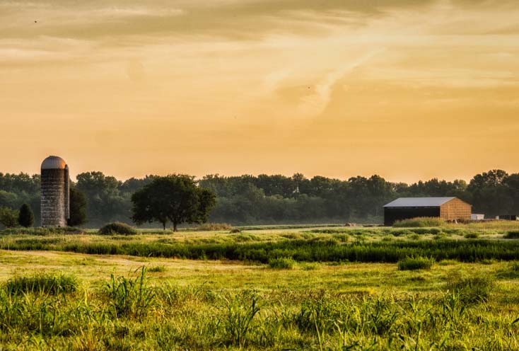 The first object that attract my eyes is the alone building at the far left. You have successfully created a leading line with the morning fog as a horizon and ended at the Silo.