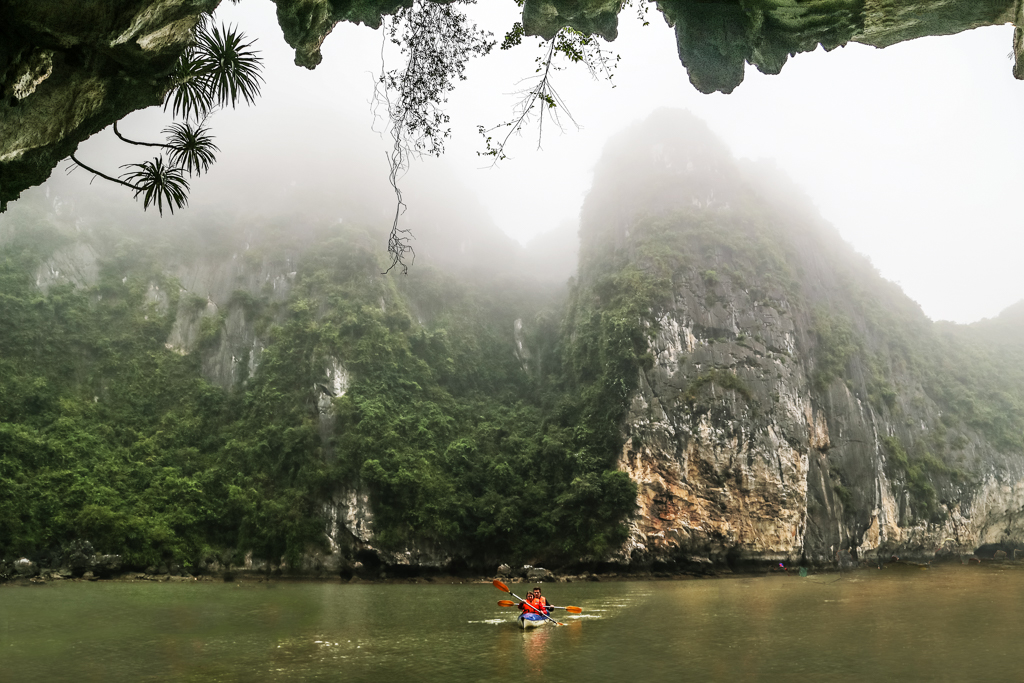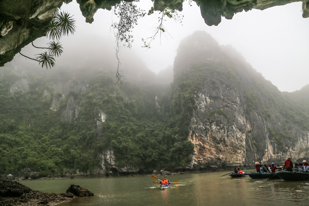 You suggest to wait for a while until the kayak a little further out. I got similar feedback from my local tutor. But I just cannot do that because I took the photo from another boat to follow the stream of other visitors. The place were so crowded. Look at the original image before I removed a part of land on the left corner and another boats at the right of the image.
