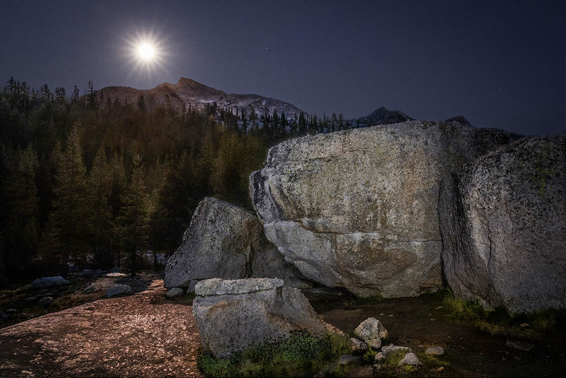 To me, the composition is just perfect. And, I really appreciate your efforts and creativity to get this image. The moon is outstanding with its starburst at f/16.