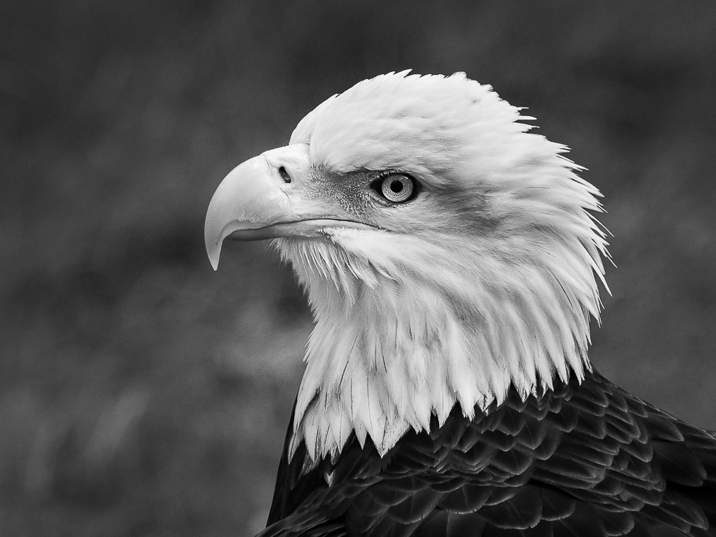 This image certainly benefits from being converted to BnW. Is there any way that you could show more detail in the white feathers on the top of its head? I just did a quick edit on the white feathers by using the radial filter in LR to reduce the highlights. I seem to have made the feather go a bit muddy but if you tried this process the original you may have more success than I did. : ) Capturing the detail in white feathers in full sunlight is never a simple process. |