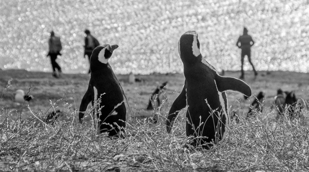 I cropped the image in to draw more attention to the penguins and the intruders. You handled the harsh light very well.