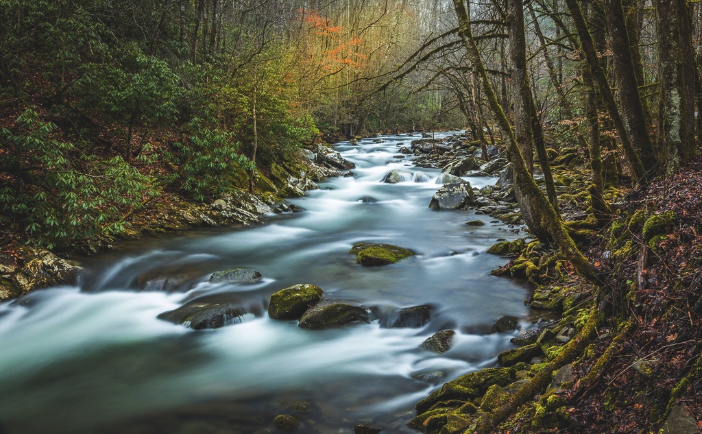 In my opinion, this photo will be perfect to make it moody. Such as darken the green, add some blue to the deep dark green moss on the rocks. Darken the sky. Try bring up the contrast to cause the mysterious effect, such as bring up more dark (don't care loss detail in dark), bring up most black point in tone curve to add fade to the image. I don't have PC photo editor.