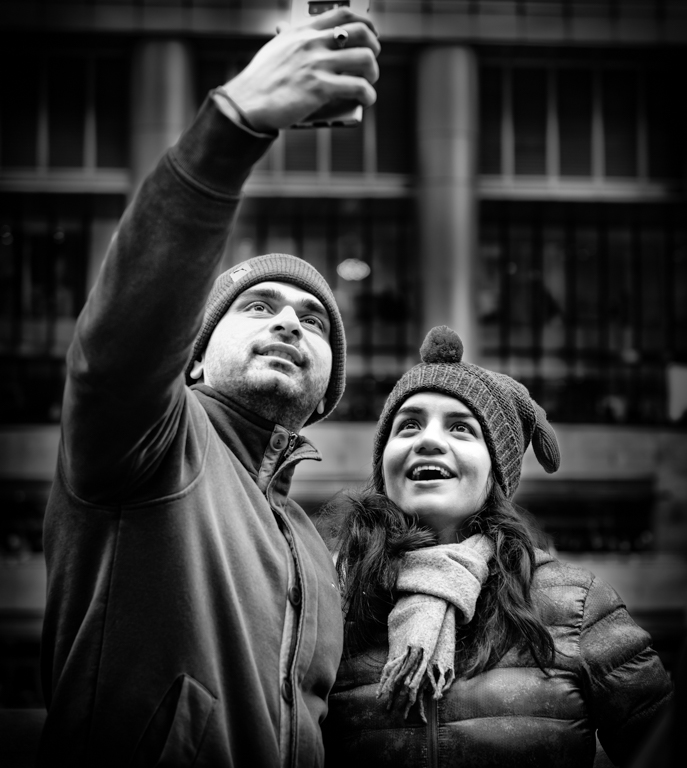 You brought out a very good point about the cell phone being close to the top of the frame. It was a quite a split second reaction between I spotted the couple, bring up the camera, move to the right to get the position that I wanted to show both of their face with the arched arm. The whole process of taking this picture is very sudden and everything goes by feeling (I do that a lot).