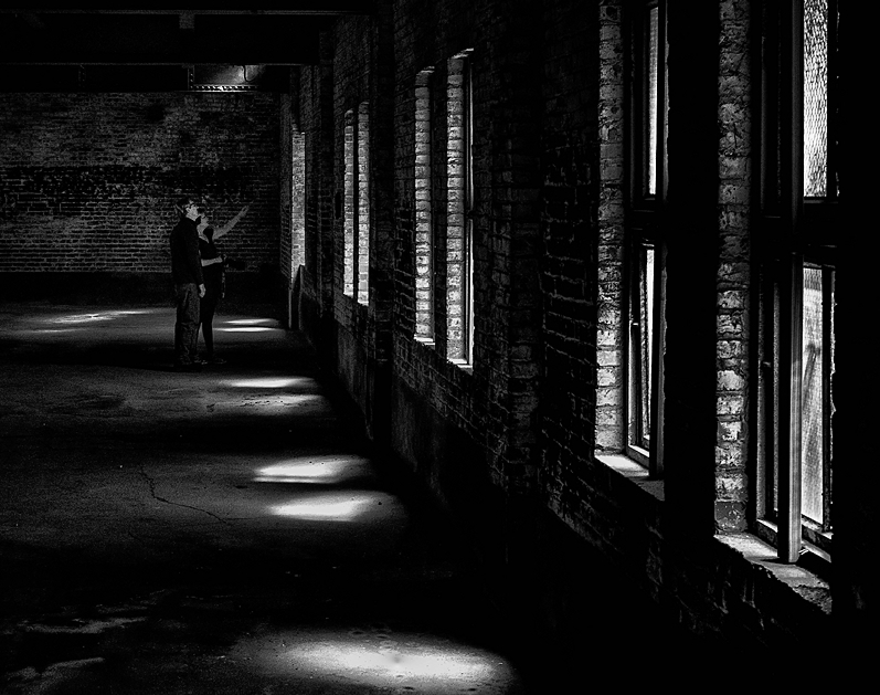 Very nice conversion, the color won't have the same effect. The B/W brought out great texture of the wall. The contrast of dark walls and the lighting works great. Both window and the lights draw my eyes to the couple. Very nice composition. Personally, I prefer tighter crop, but it's just how I like it. Nothing wrong with yours. |
