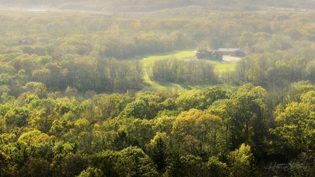 What a gorgeous vibrant fall view you have here while I haven't even seen fall in Chicago area (a place jumps from summer to winter). The tree trunk, foreground leaves, tree leaves frame the farm and landscape perfectly. Agree with Michael about up the shadow of the barn and darken the foreground leaves to have eyes more draw to the farm house and the landscape. Beautiful view indeed. |