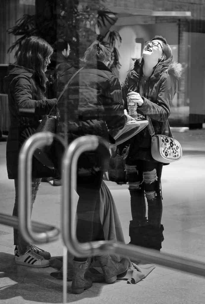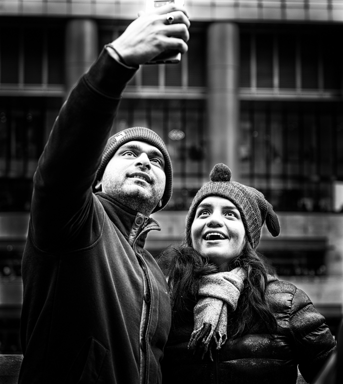 This is quite interesting image where all the lines goes so well with each other. The ladder and the cell phone lean perfectly forming a triangle. The performer leaned with the cell phone. Two characters were in the same image but yet totally disconnected. Great capture. Maybe add a bit of contrast. |