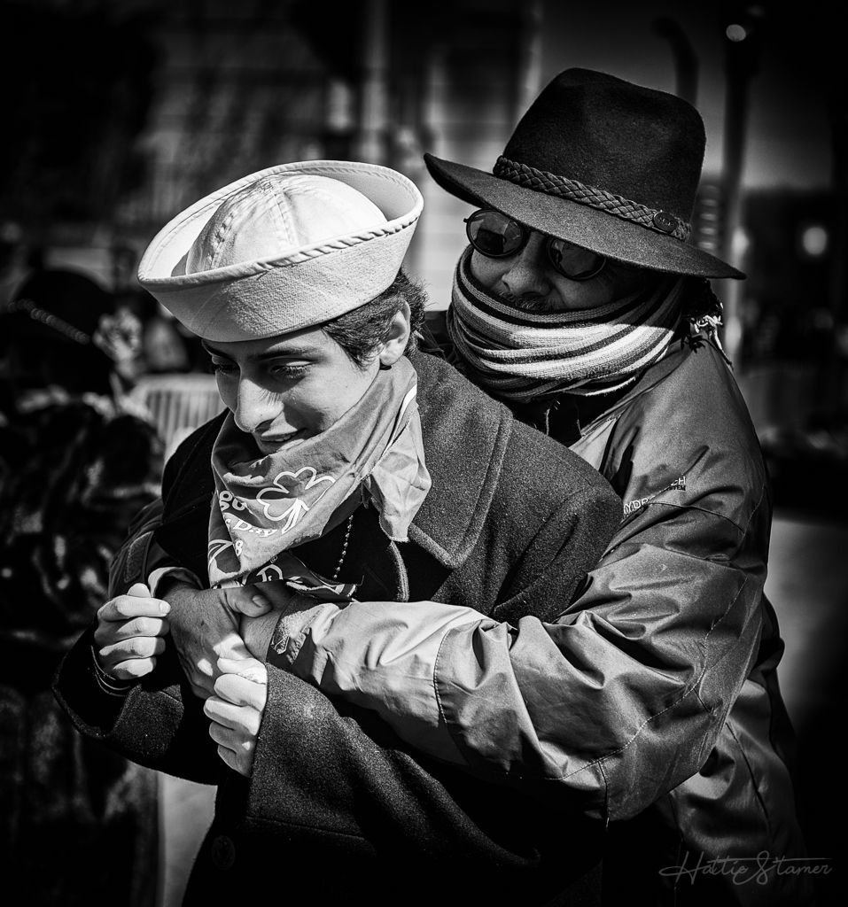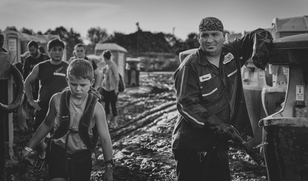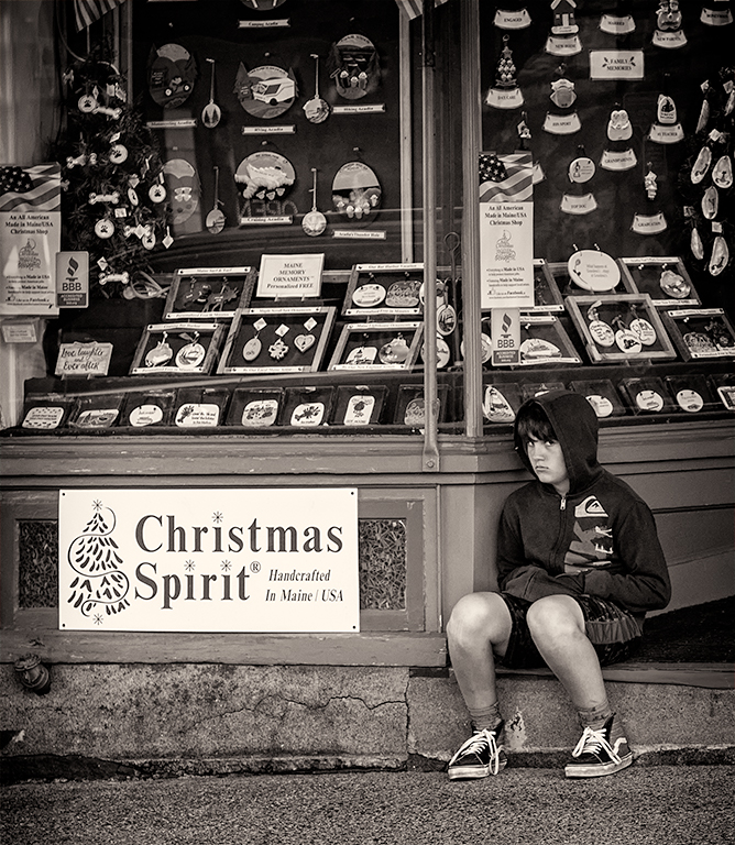 I enjoy this image a lot. There are quite a lot to look at, but all good story telling here, from the tattoo, to the kids, to the guy outside and the truck. Even with a hot day, you have done well with the post processing and conversion. |