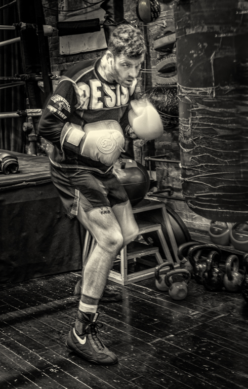 Thanks for the comments. Here is a different interpretation of the image - tighter crop but less "clutter". Also tried to play with lighting so that it was more obvious that he didn't have only one leg. |