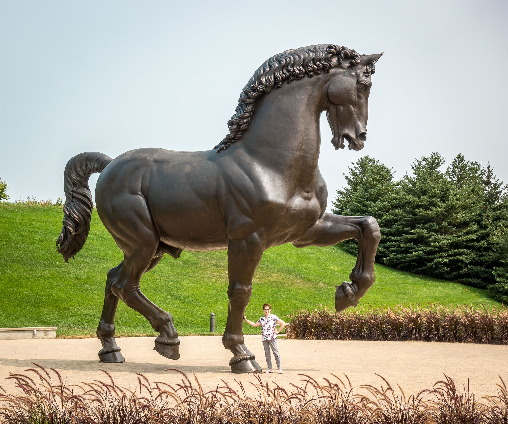 SIDEBAR - Leonardo DaVinci's Horse. DaVinci was comissioned to create a statue of a horse, bigger than any in the world. He didn't finish it, but 500 years later the reins were picked up (pun intended) and two horses were cast based on Leonardo's design. One is in Milan - and the other is in ....(wait for it) ...GRAND RAPIDS! At the Meijer Gardens and Sculpture Park. |