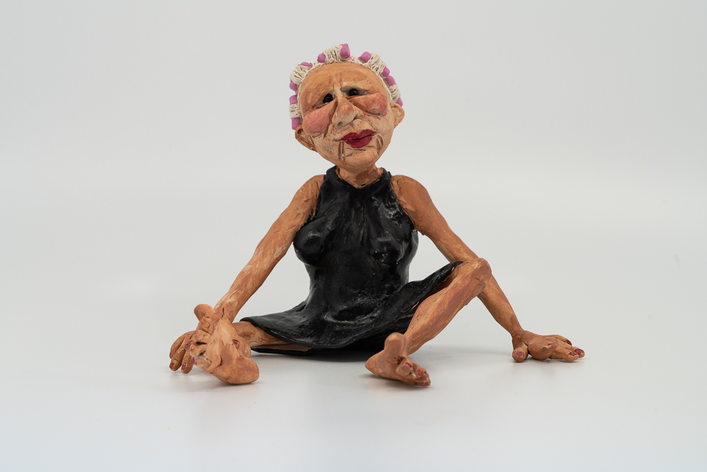Thanks for the kind comments. I have 2 of these clay figures. They are about 6 inches high. I've had fun over the years setting up little holiday vignettes. I have a little shopping bag with gifts and a small Christmas tree with lights. Here's her partner in crime.