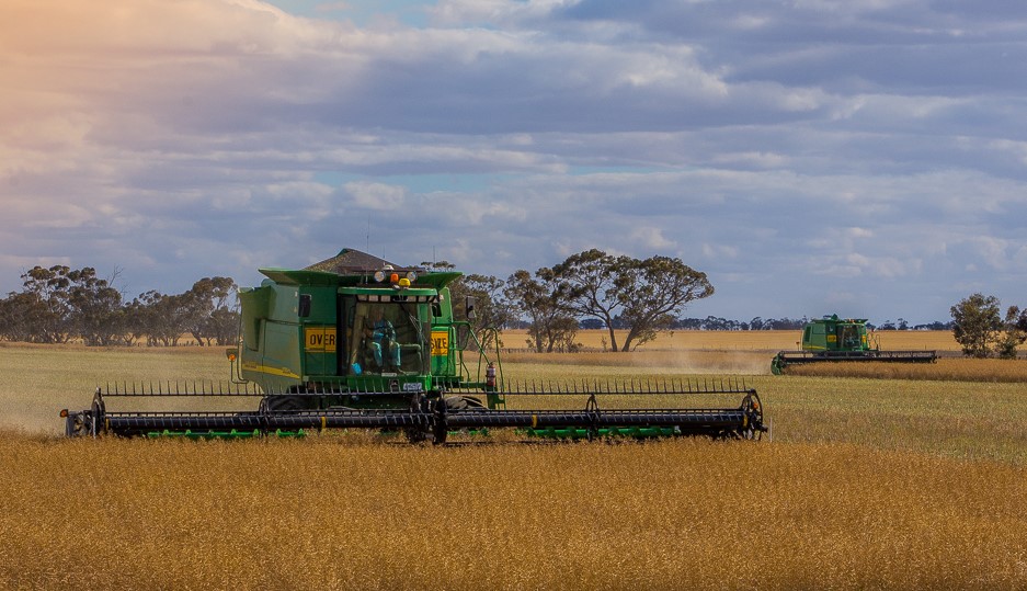 I find the bottom edge that still shows some of the cut crops slightly distracting and think a tighter crop might strengthen the composition. I have attached an edit I did showing what I mean. |