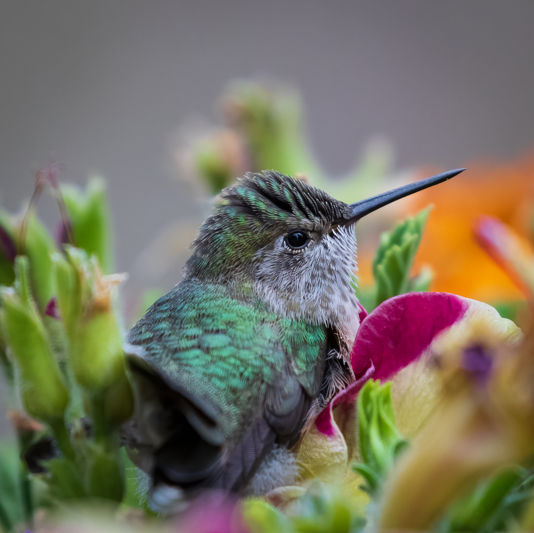 Yes agree its great fun to shoot the Hummingbirds and here in Colorado i think they are about to leave too! We don't have a Hummingbird feeder (as bears are active in our area) but instead i have plant pots and they seem to love them so i combine shooting them amongst the plants so best of both worlds. I like how you have captured this one to the scale of the feeder and the colours work well. The bird is a little soft but works with the vignette. I try and shoot at a high shutter speed if can and around F5.6 but easier said than done! |
