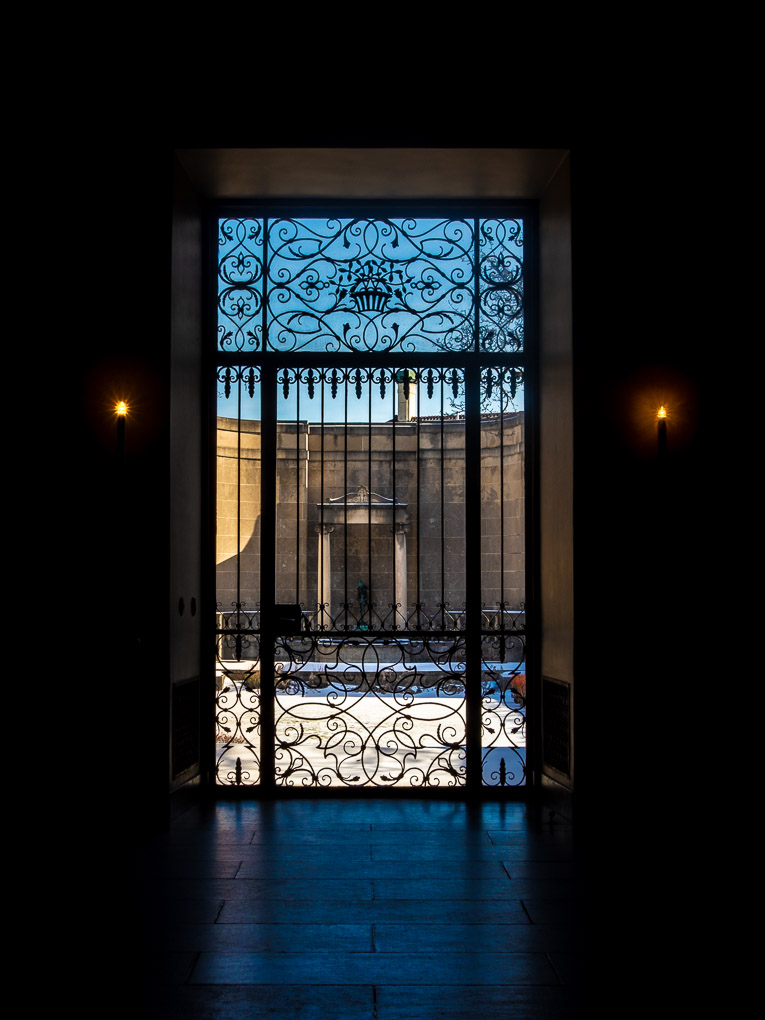 Fist off, I like the sepia look I think it adds to the over all feel of the image. I also like the framing and composition. The wall, lamp posts and the string of lights all create a strong leading line. The young girl looking back at you also helps to pull us into the image.