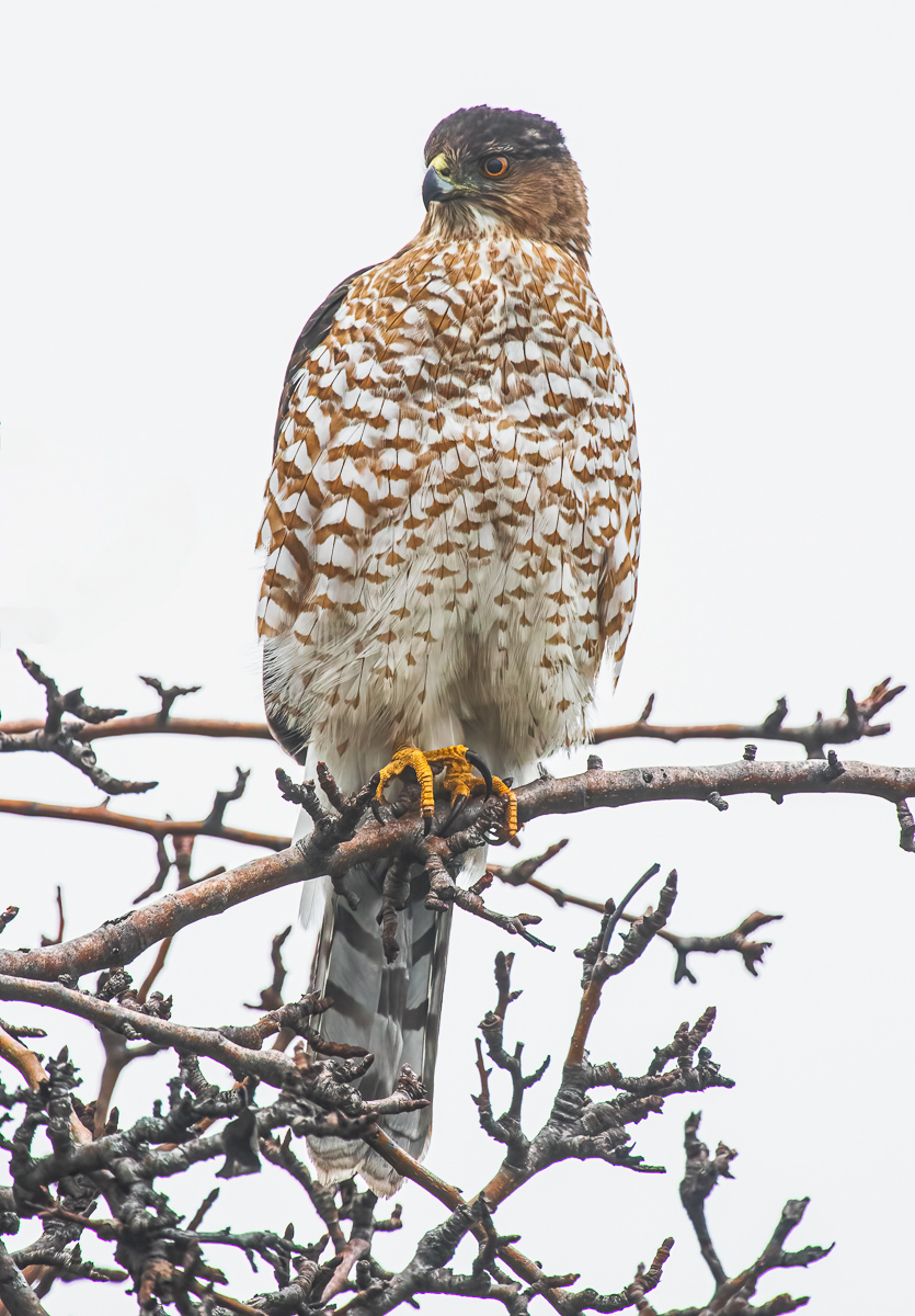 Yesterday's release of Lightroom with new generative AI capability encouraged me to try the new capability out on this image, so I removed the branches on the left hand edge. I also intensified the color of the hawk and lightened his eye a bit. |