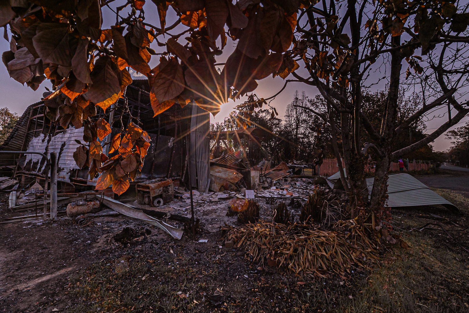 Burnt house- 1 - An "awful scenario". An "awful scenario". It as one late afternoon, sunset time. We stop at Great highway, see a couple of houses were burnt hard in bushfires. Some 724 homes, 49 facilities and 1582 outbuildings have been destroyed so far this fire season. Six people have died and 2.7 million hectares have been scorched. A Fire chief loses house in Blue Mountains blaze too. |