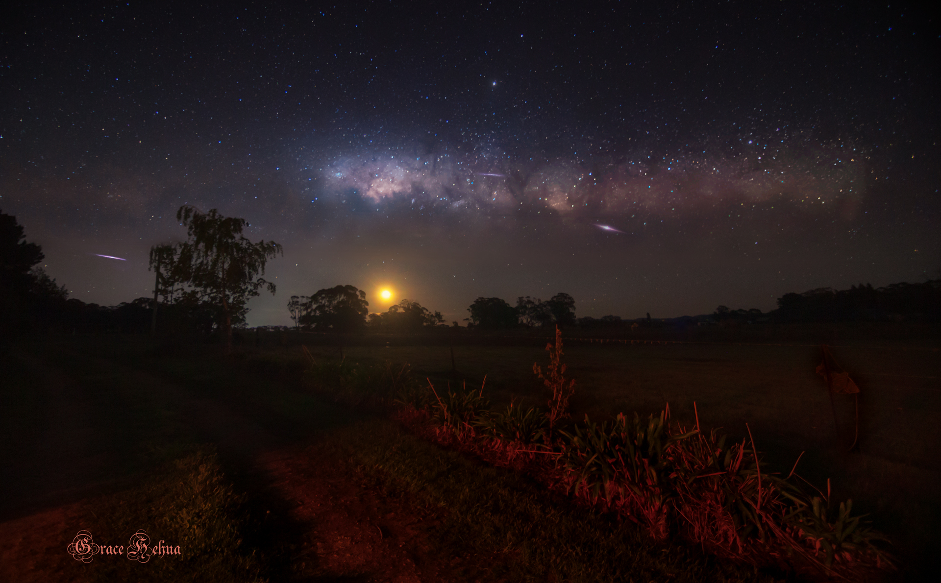 Hi Tony, the stars/ meteor shows in the photo was made from over thousand captures during 3 nights continuing shots during period from dark start night to early morning 5:30 am for meteors show.... the foreground shot was taken in first night around 8-9pm after we had dinner and go out set up camera, about 20 minutes ISO 3200 F2.8 |