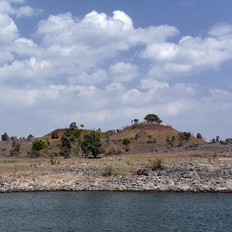Sanat, sometimes less is more. I think a square crop is beneficial to this image and I pit the highest hill and its trees on the 1/3 line and emphasized the sky with its beautiful clouds. I would suggest that this be a study in textures: the water below, the rocky shorelines, and then the hills. These elements can be enhanced in LR and I think give you the image that you seek. Those clouds are crazy! |