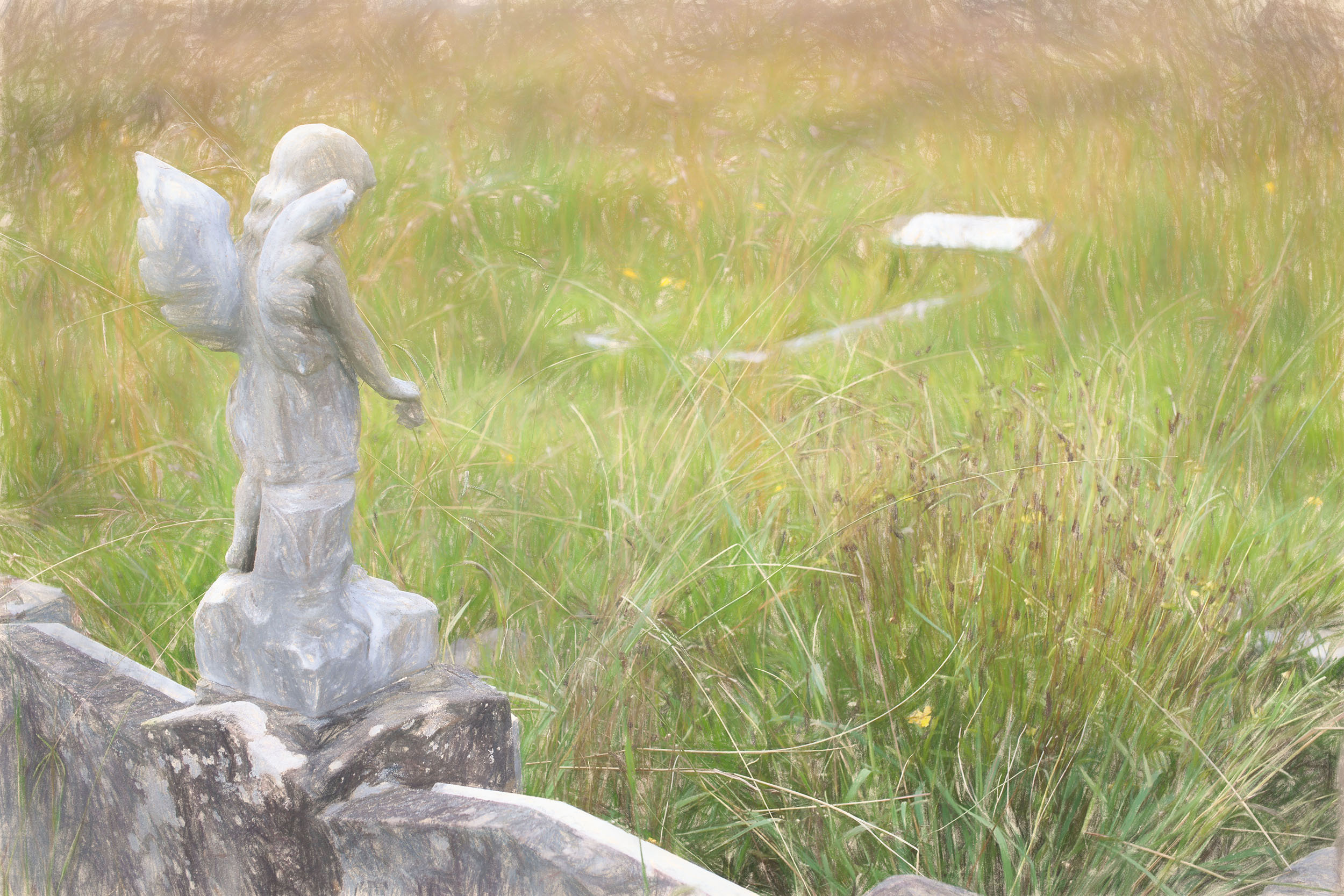 I like your choice of pencil effect on this image. The way you positioned the angel to look at a grave site was well done and impactful. I would suggest that you do some burning (example below) to bring some contrast into the image for more impact and drive home the gaze of the angel at the grave. Topaz can be a lot of fun! |