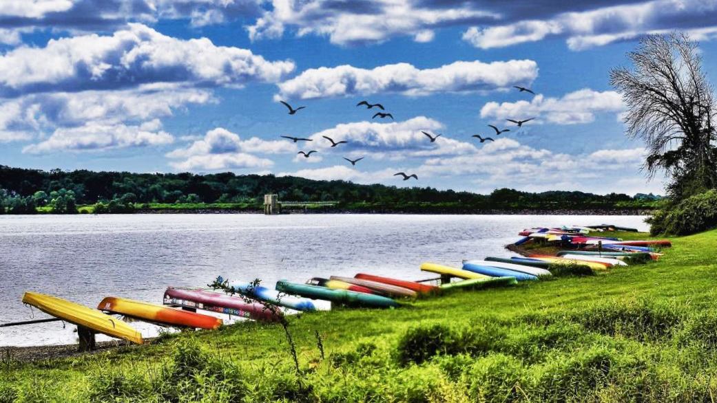 John, I think some of the foreground challenges can be rectified with a 16x9 crop as below. I used the spot healing brush in PS to get rid of some of the overlapping plant onto the canoes and also brightened the image a tad so the structure at the opposite side of the lake stand outs and draws the eye. In an area such as this, I don't think there would have been any restriction on walking around and just banding that solitary sapling or wood plant down to the ground. Problem solved before you take the photo. I would also suggest increasing the vibrance of the boats and decreasing the vibrance of the grass/ground cover. I love the addition of the bird sin flight and think your sky replacement works here. |