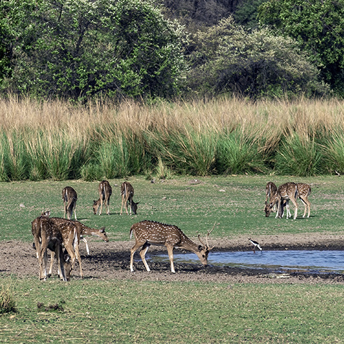 This is a tough one, Sanat. The focus should be on the deer herd. The herd is mostly butt end towards the camera. I think the story is on the buck at the watering hole. Much of the background should be cropped off so we can focus on the buck. In this image's case, less is more. I have attached my idea so you can better understand what I am trying to convey. |
