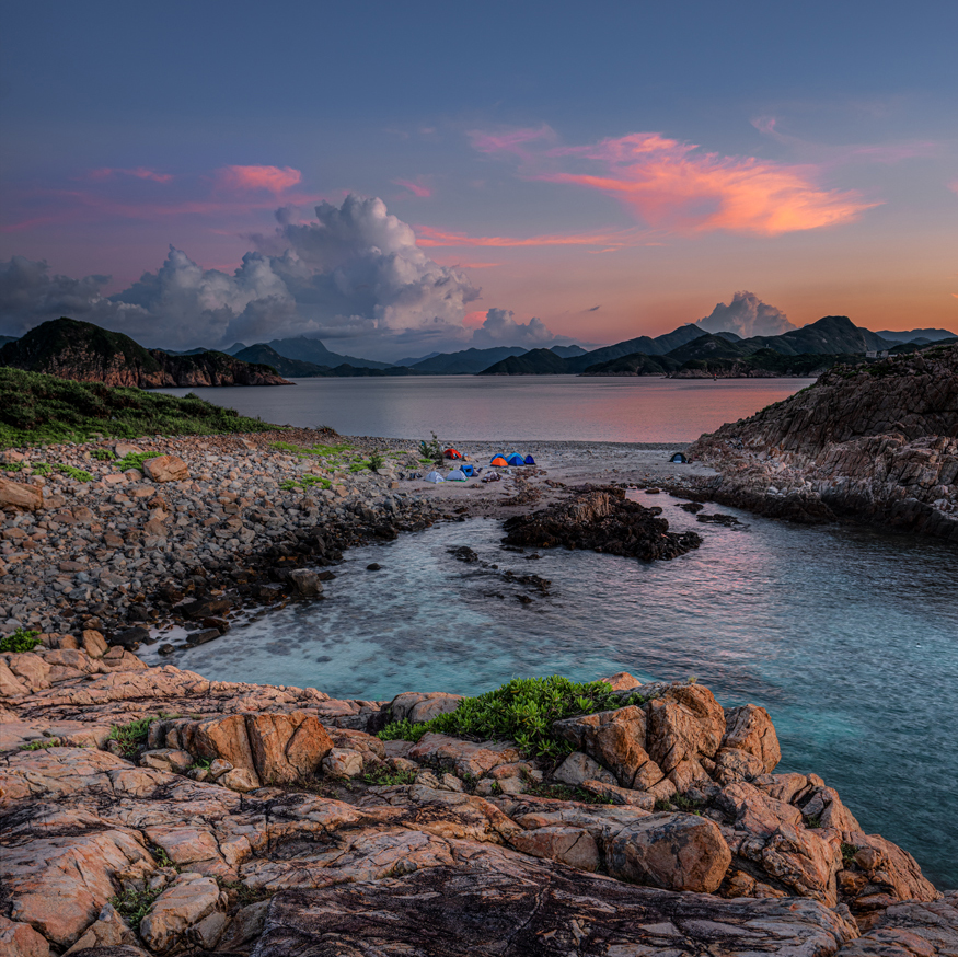 Louis, there are so many strong elements in this image. I love the red - the eye instantly goes there and you have no doubt what the story is. The sky is wonderful and your two leading lines at left and right merge at the camp site. I would suggest having a square crop to minimize the foreground the make the rule of thirds work for you. |