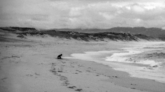 Rich, as a former newsman, I like your crop because it gets to the heart of the story. The water line is your leading line that takes you from bottom right to the person and then to the dunes and and back to the person. Ditto on the highlights. I included an image with your crop with recovered highlights and a littel cleaning up of the sand from the orignal. I used the Golden Thirds to puut the peron at the interestion of the horizonetal bottom third and left vertical third. |