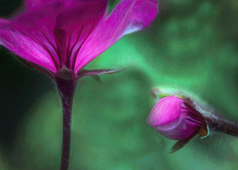 The background presents itself as concrete to my eye and the middle streak the result of drainage stain. That provides a stark contrast to the flowers, the opposite of the drabness of manmade. The contrasts to me are obvious. The use 3 flowers is good. My only question is the green of the leaves of the flower: should they be darker so as to stand out against the background, I don't know. Lovely piecxe nonetheless! |