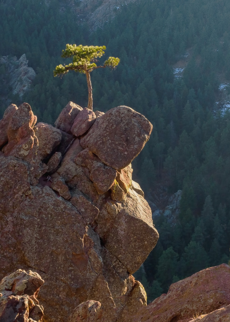 Wonderful subject! There are so many great elements about this image, the light, the contrast with the background, the DOF from front to back. However, the balance of the image is off as a horizontal - no rule of third, diagonals, triangles, etc. Since the story is the lone tree, I would suggest a vertical crop and then clone out the backpacker at lower center. |