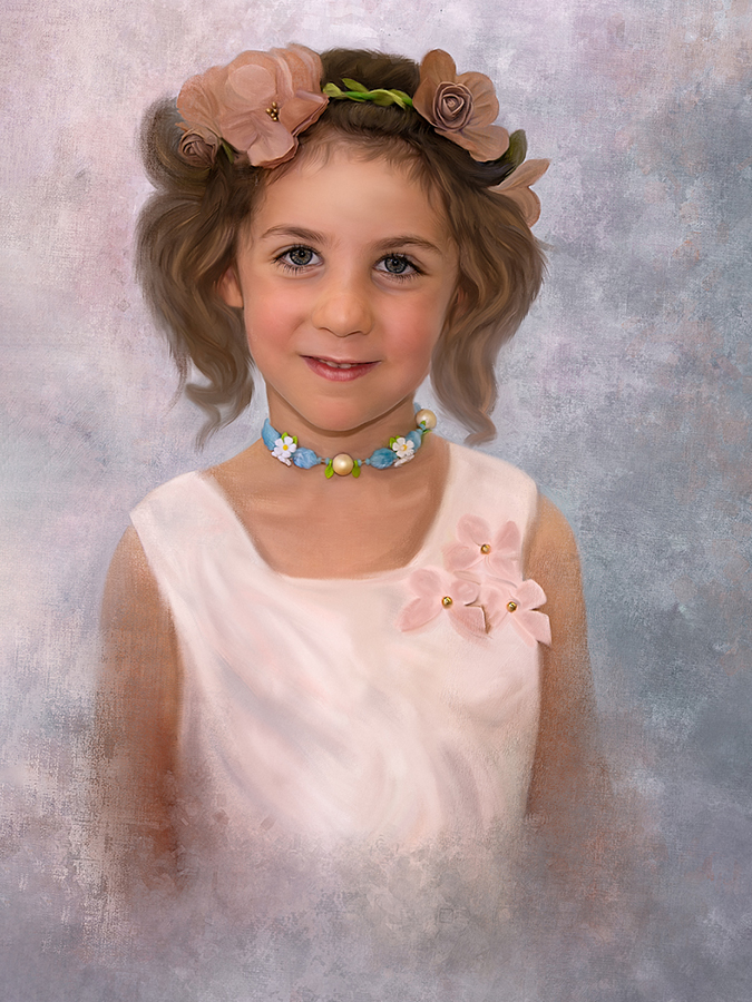 Cindy, I don't think you did an injustice to the hair, I like it - buy I'm a guy, so there's that! The only suggestion I would make is to put some space at left with Content-Aware Fill because the girl is facing straight on so you don't need that much space at right as if she were facing to the right. The face is adorable! |
