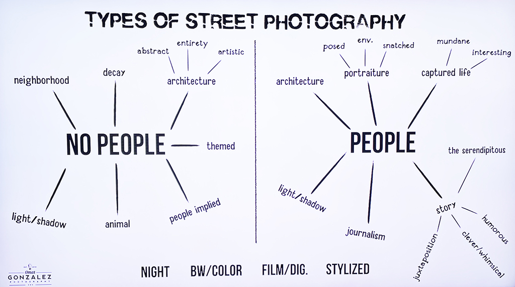 What is street photography? I have included a chart from Omar Gonzales. Yes, that building is bright, I'll look at toning it down, thanks. |