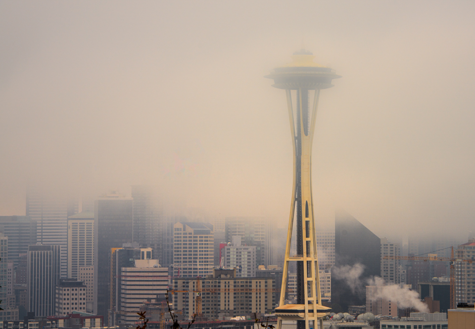 I really like the mood, foggy idea - Nice image, no city for us to capture here so that is a change:-) . I like the re-cropped similar to Karen. Increased the saturation and gave more details on the bottom and soften the top a tad. |