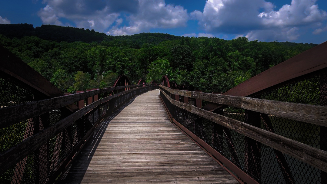 Jay - I, too, like the composition of the bridge winding away from the viewer. I tend to like things a little darker, so since I had some time with Dorian's undecided path, I played by cropping a bit and darkening the sky and trees a bit, to contrast with the lighter walkway. |