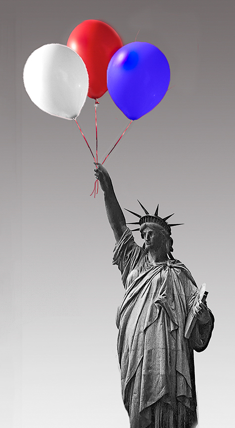 Joan, I like your concept of adding color to a monochrome image. I also like your light source matching and the gradient sky. The highlights on the balloons kept drawing my eye, so I darkened them a smidge. While I was playing I tried to bring out some of the shadow area in Lady Liberty. That had the effect of slightly sharpening her. I don't know if you wanted that type of change. |