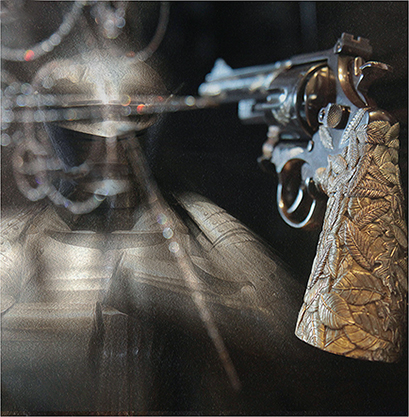 This is a very interesting image, which can be interpreted in many ways. I like the ying and yang of the gun and the armour, which is amplified by the sharp to blur. I do have an issue in that the bright blurs keep my eyes from concentrating on the rest of the image. I wish they were not quite so bright, and there were fewer bright flare spots. |