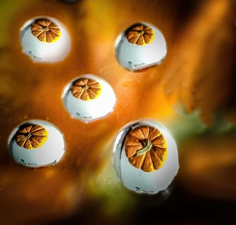 As an additional comment: I really the way you composed this image. I too thought of eggs floating with pumpkin stickers. If this was my image, I would have made only five of the water drops. As for removing the noise, I used Topaz DeNoise AI, which I found very controllable. I made selections of the noisier areas, put each on a separate layer, and applied differing strengths of noise reduction to each. |