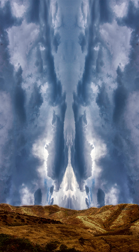 Brian, I can compare this to a Rorschach image. I see a giant squid in the center of the sky, with a humanoid type of being on each side. |