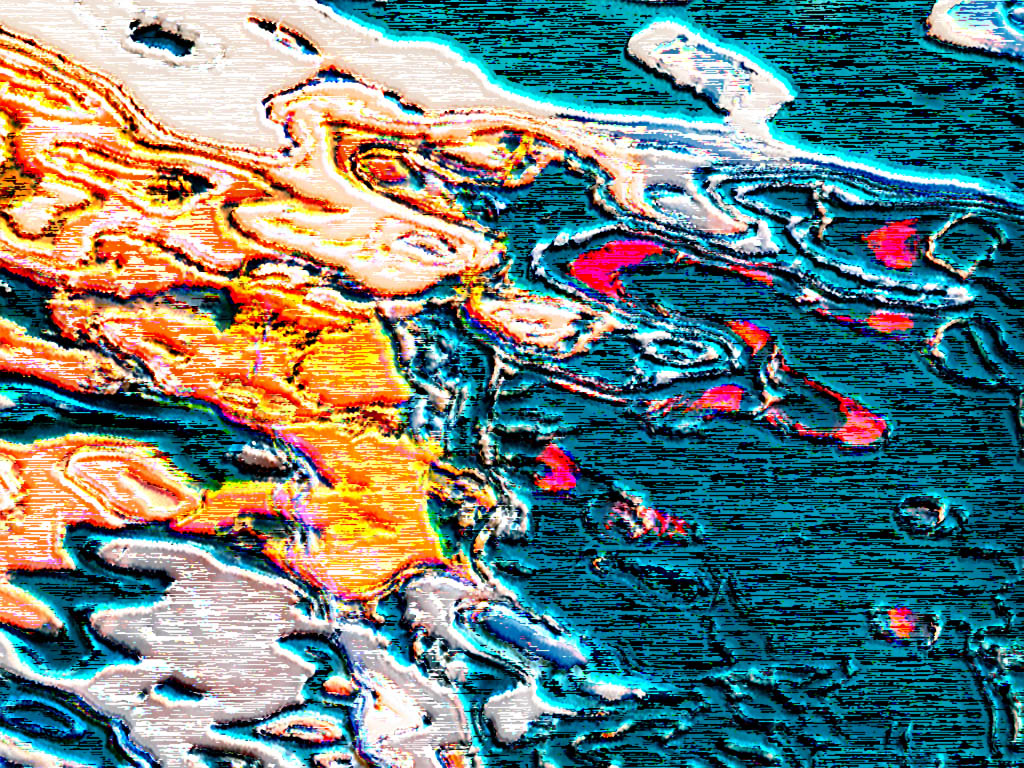 Freddie, The fun of abstracts is the flexibility. Since the image is water themed, just for the halibut I tried a totally different iteration. I applied: emboss; apply image to the green channel; mezzopoint, med lines; sharpen. |