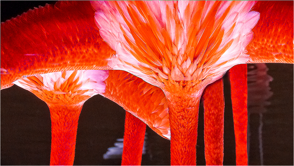 Bob, Your image hit on of my weak spots, impressionism. You started with a high class good image, and I interpret your final image as telling your feelings about the image. I see a struggle to rise from the ordinary, as represented by the darkish blend of red and green, to the gradually increasing luminescence, where it will show allitts beauty. I can also see it a a representation of man's continuing Faustian struggle. Very well done. |