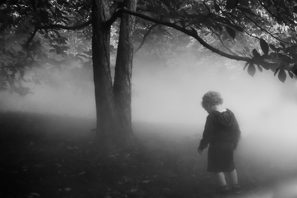 I like a photo that can draw you into the subconscious. What is the little boy contemplating? One cannot know what goes on in their minds. And the woman walking into the fog. Are we all not living in our own personal fogscape? Are we not continuing to put one foot in front of the other while protecting ourselves from outside forces as best we can while the child inside of us is quite often befuddled by this life. |