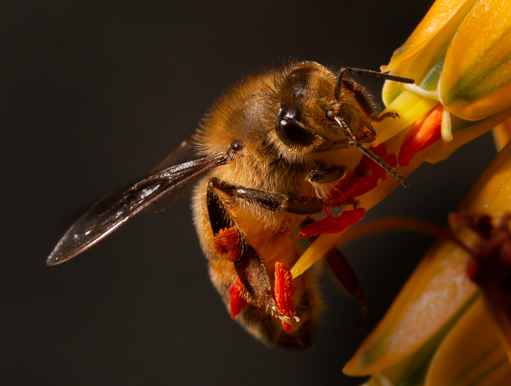 Great capture Bob. Love the fine detail of the hairs on the Bee and so very thoughtful of the Bee to sit on a magnificent striking flower for you. I agree with Carol's suggest of trying to use a ring light - or a soft box for the flash that is what I use and it does lessen the hotspot areas. |