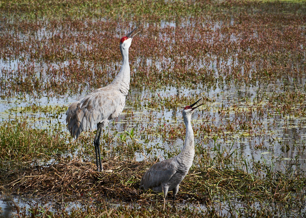 I agree that I could have spent a little more time to open the face a little. It is too tight on the left, I do find it interesting about the space comment. Many bird photos are very cropped on all sides. I like to show the environment when it adds to the photo. I was avoiding the father walking around the front a bit too close to keep in focus at 800mm. I did have this one at 250mm which had both parents but I find the background very busy and the birds get lost a little.. |