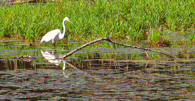 I also agree that the image needs cropping. I don't think the outhouse really adds anything so what something like this. Unfortunately the Egret is overexposed and the highlights are unrecoverable. |