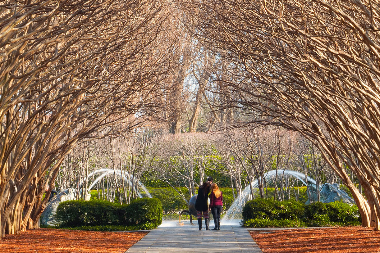 The camera was on a tripod. About the title, used it due to fallen dry leaves on the sidewalk (It is not red dirt) but agree not a strong title, start of fall and this is a botanical garden some plant remains green and thus some green in the distance.